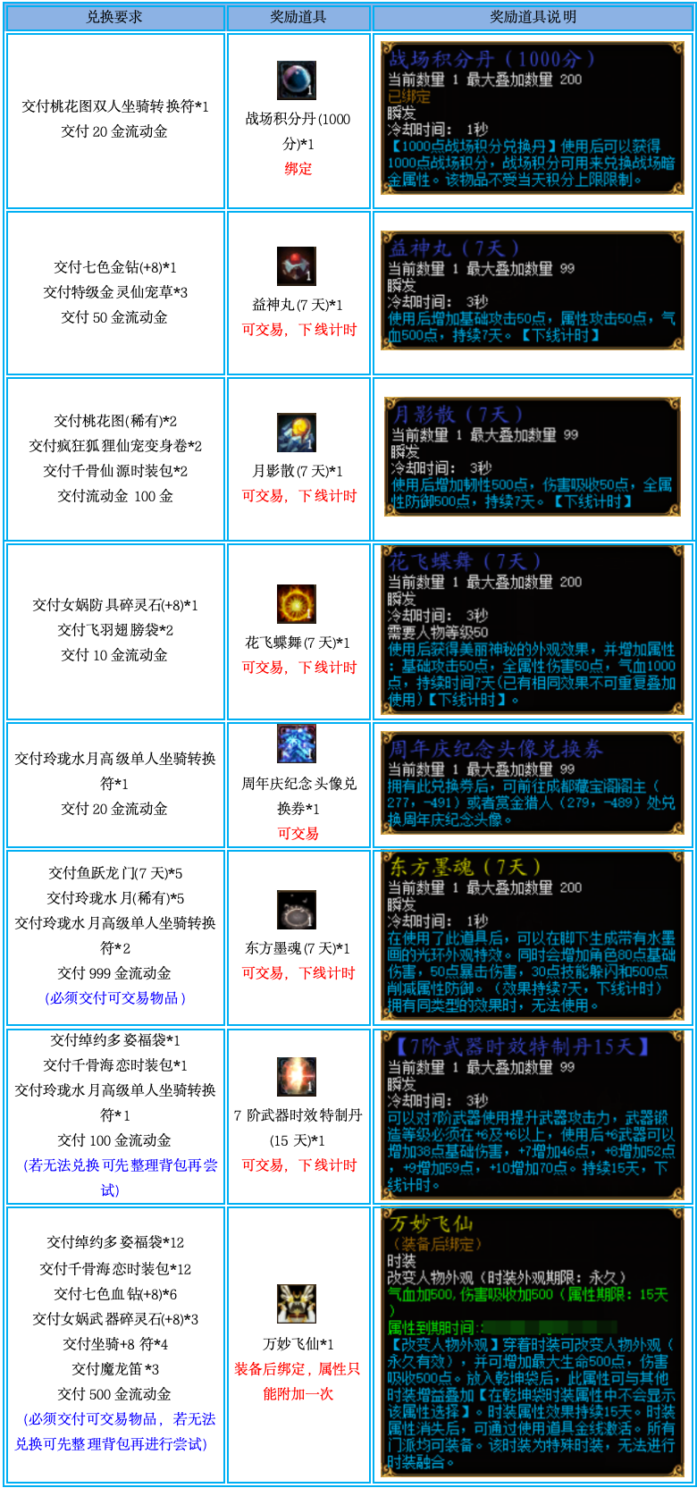 3、请在本次活动结束前进行兑换,活动结束后本次可兑换道具将全部下架。