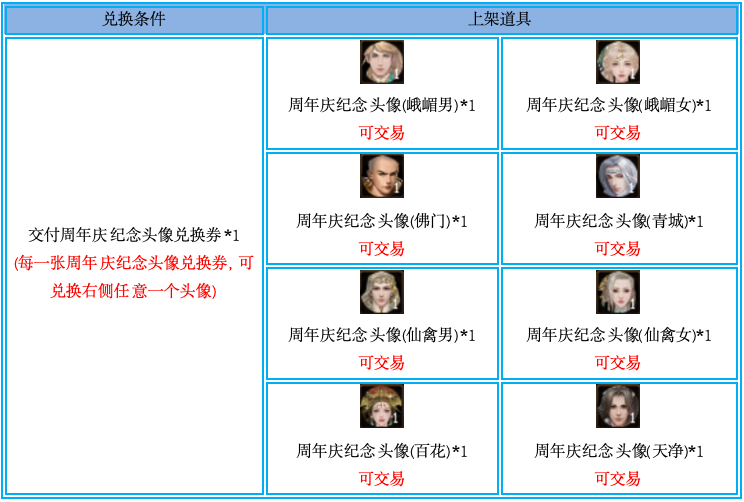 2、拥有【周年庆纪念头像兑换券】后,可与“赏金猎人”对话兑换以下纪念版头像,该系列头像的兑换暂不下架: