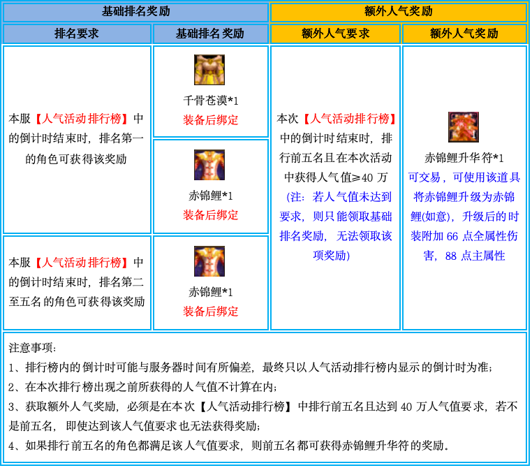 2、本活动开启前,角色已经获得的人气值不会计算在内,必须要在活动开启后获得的人气值才为有效;